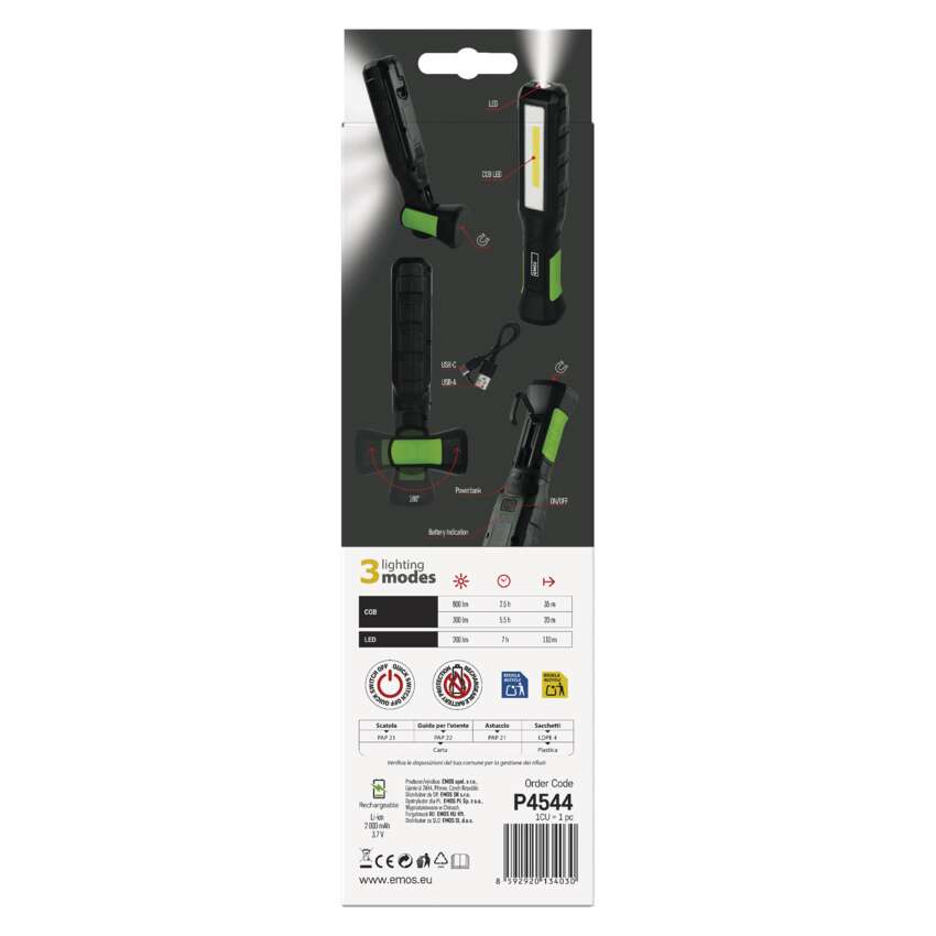 COB LED+LED újratölthető zseblámpa P4544, 800 lm, 2000 mAh