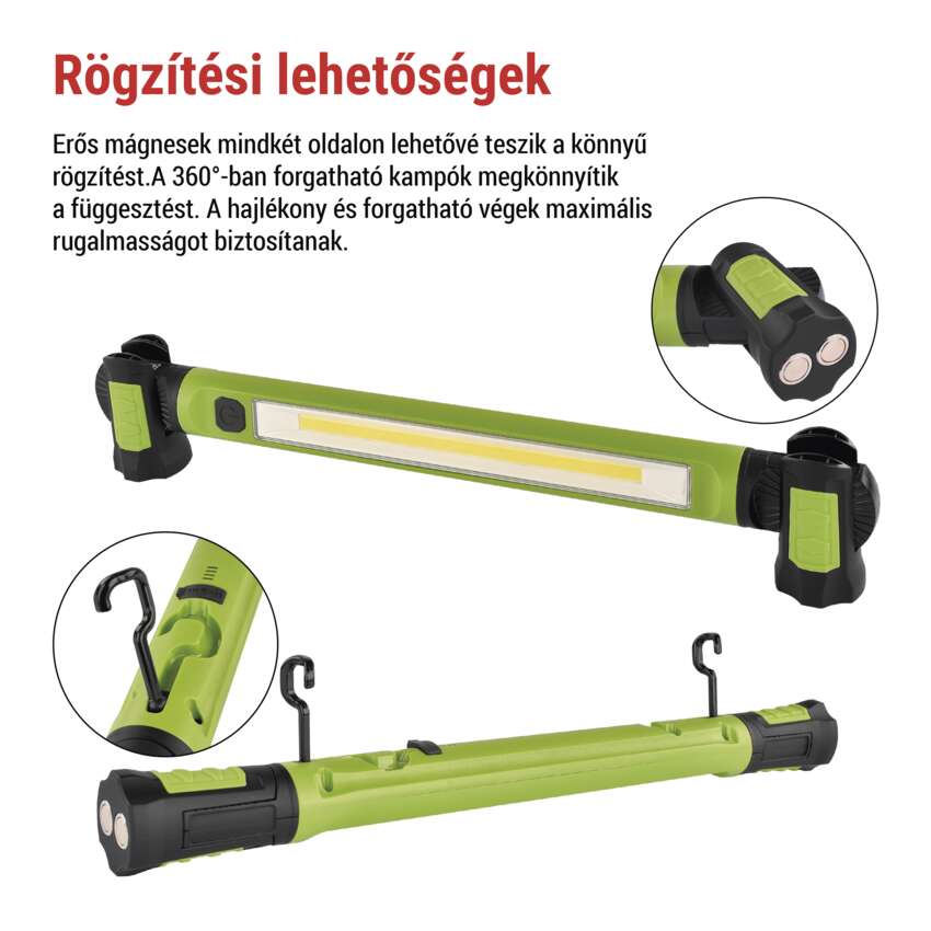 | üzemidő részletezés | COB LED 100 % – 2 óra, COB LED 40 % – 6 óra |