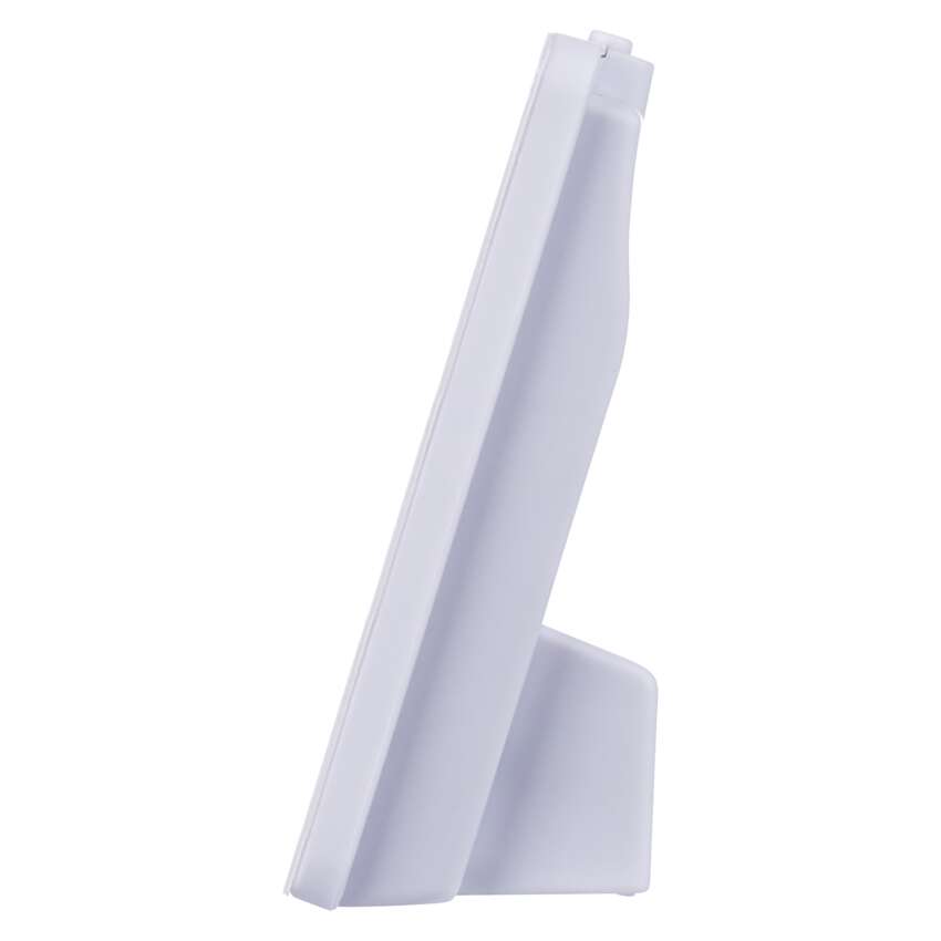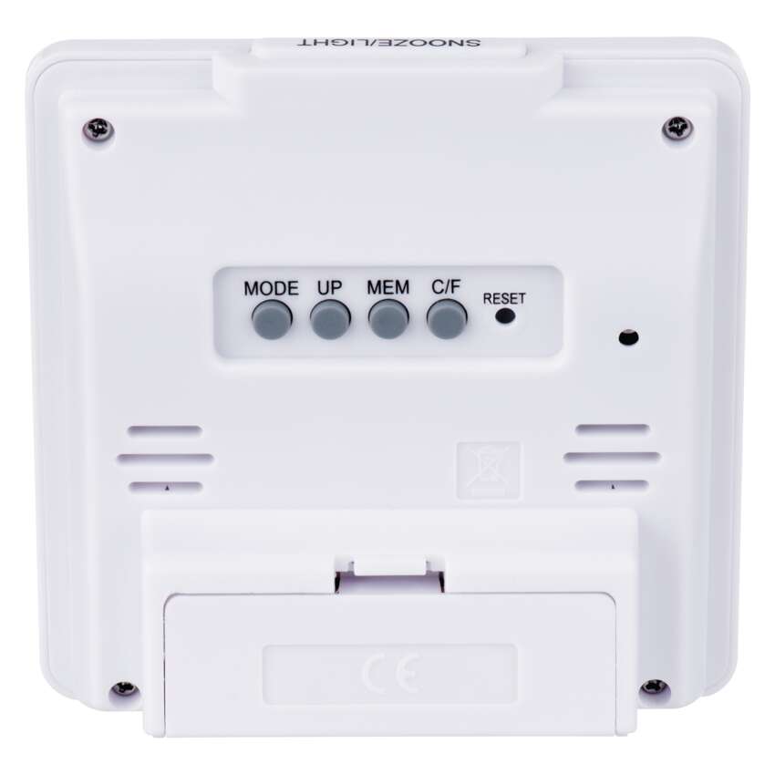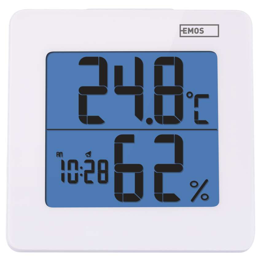 A hőmérő fehér színű, kvarckristályos órával rendelkezik. A hőmérő kijelzője háttérvilágítással rendelkezik, jelzi a beltéri hőmérsékletet és páratartalmat, a pontos időt és a dátumot, valamint ébresztő funkciót is kínál.