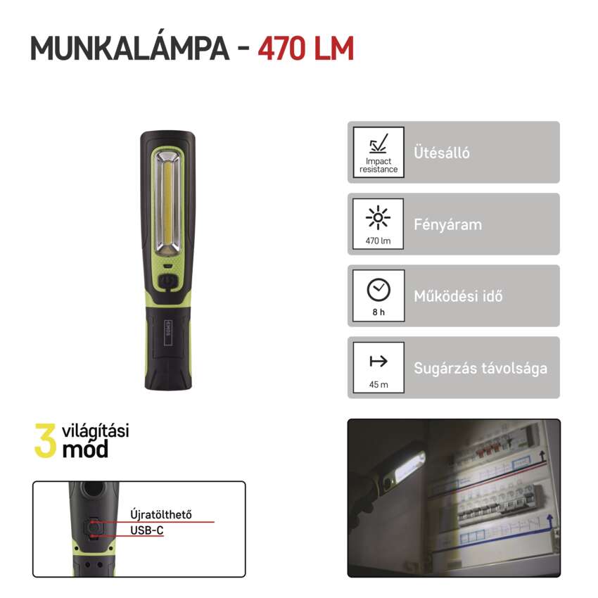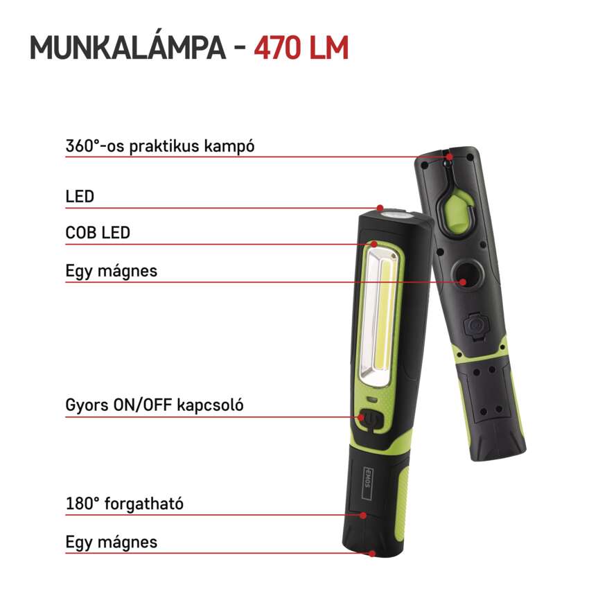 | üzemidő részletezés | COB LED 100 % – 2,5 h, COB LED 50 % – 4,5 h, LED – 8 h |