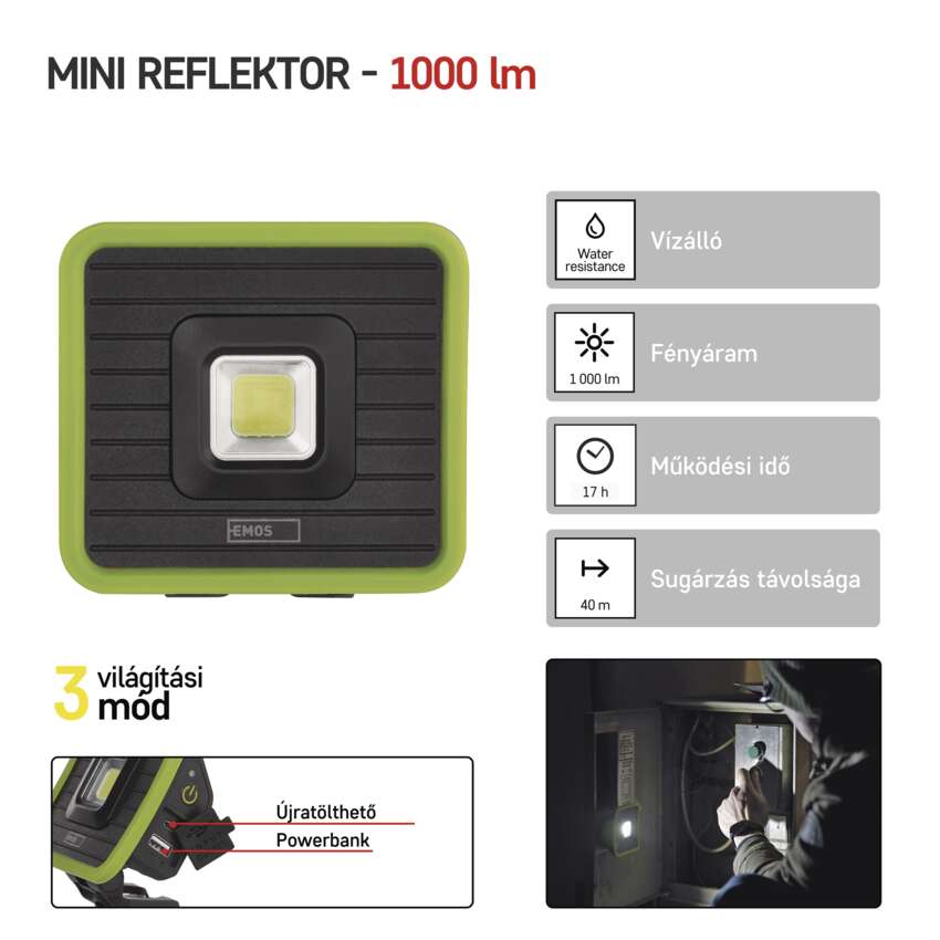 COB LED-es újratölthető munkahelyi reflektor EMOS P4539
