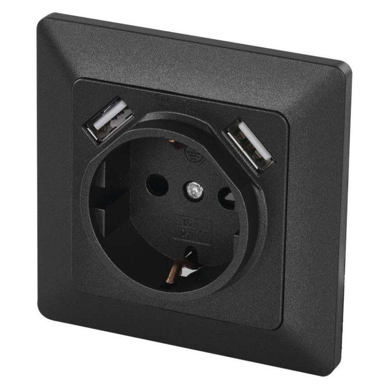 EMOS Aljzat USB csatlakozóval, SCHUKO antracit