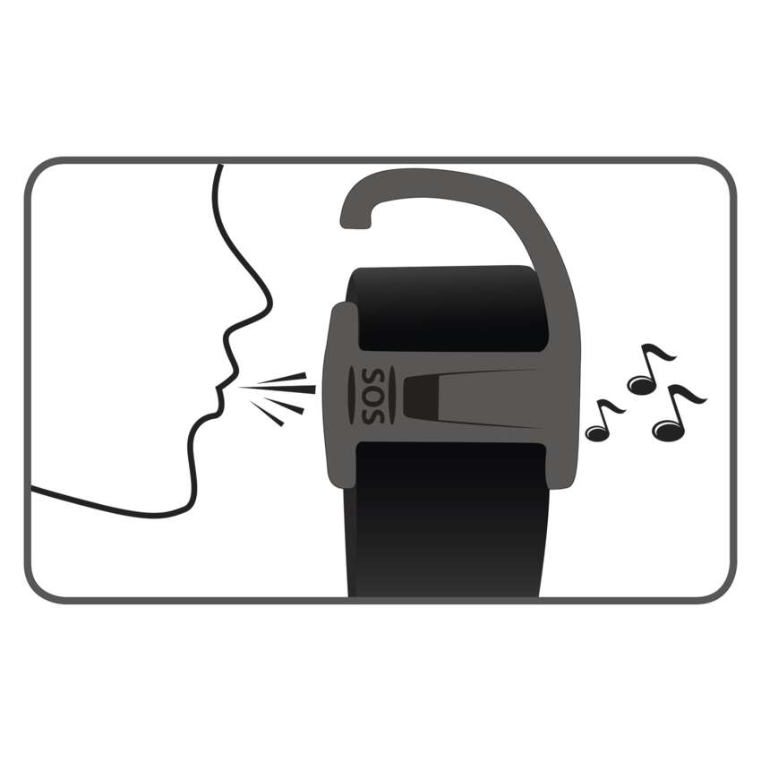 A fejlámpa rendelkezik egy akasztóval, amellyel felakasztható, egy síppal, amellyel pl. segítséget lehet kérni, és a szíj hátoldalán egy piros lámpával.