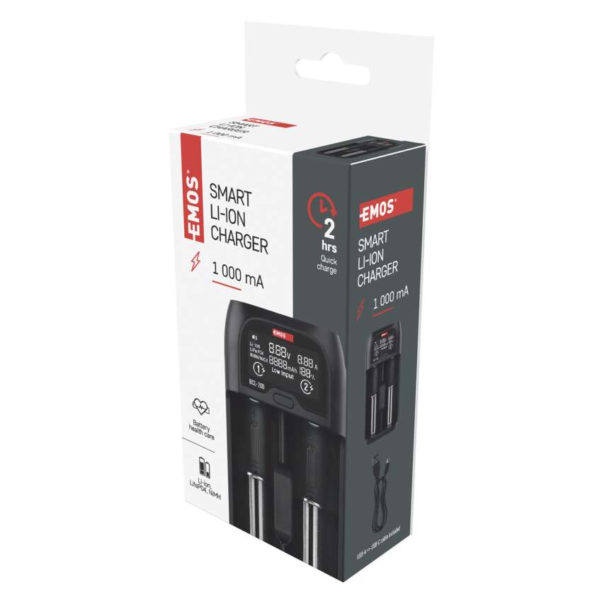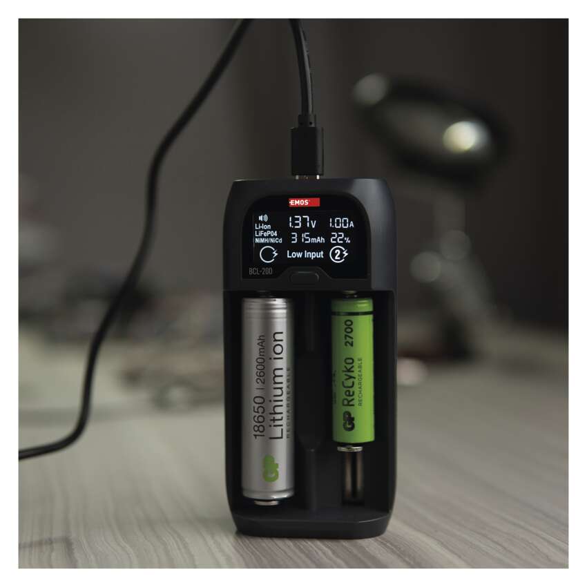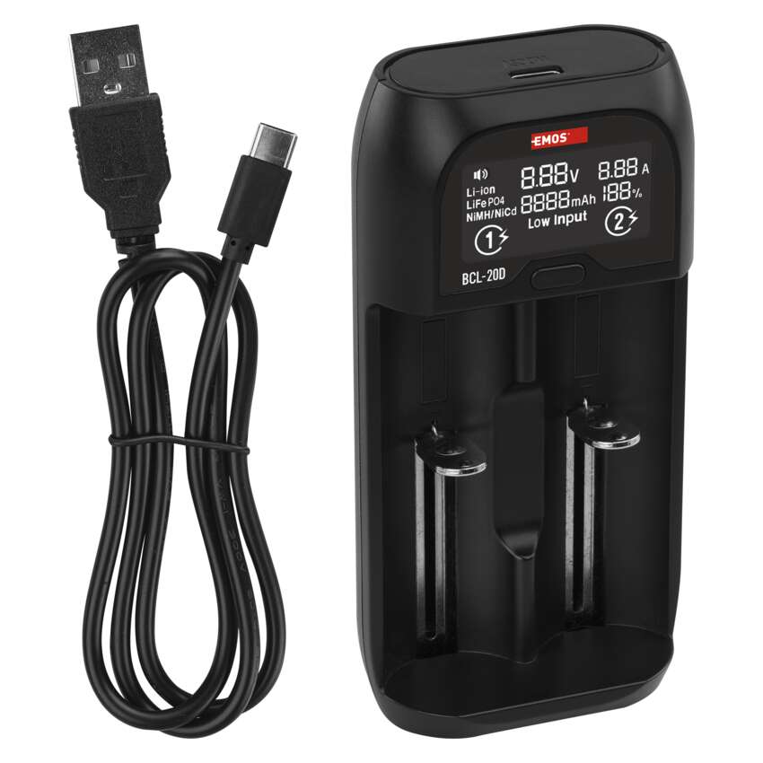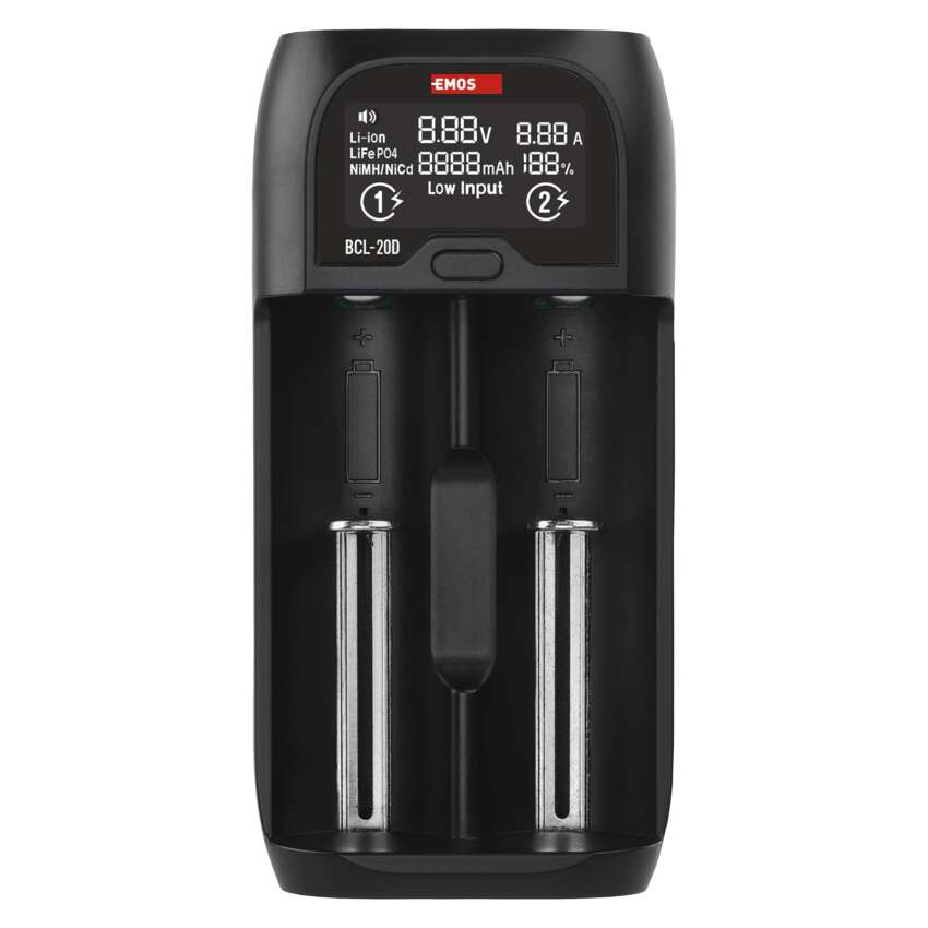 Az EMOS BCL-20D töltő a töltést a tényleges szükségletnek megfelelően irányítja minden egyes akkumulátor függetlenül. Ni-MH, Ni-Cd, Li-ion vagy LiFePO4 akkumulátorok bármilyen kombinációját képes tölteni. A töltés a hagyományos töltőkhöz képest extra gyors is.