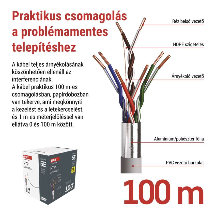 | kábel jelölése | FTP Cat5E PVC 1 – 100 m |