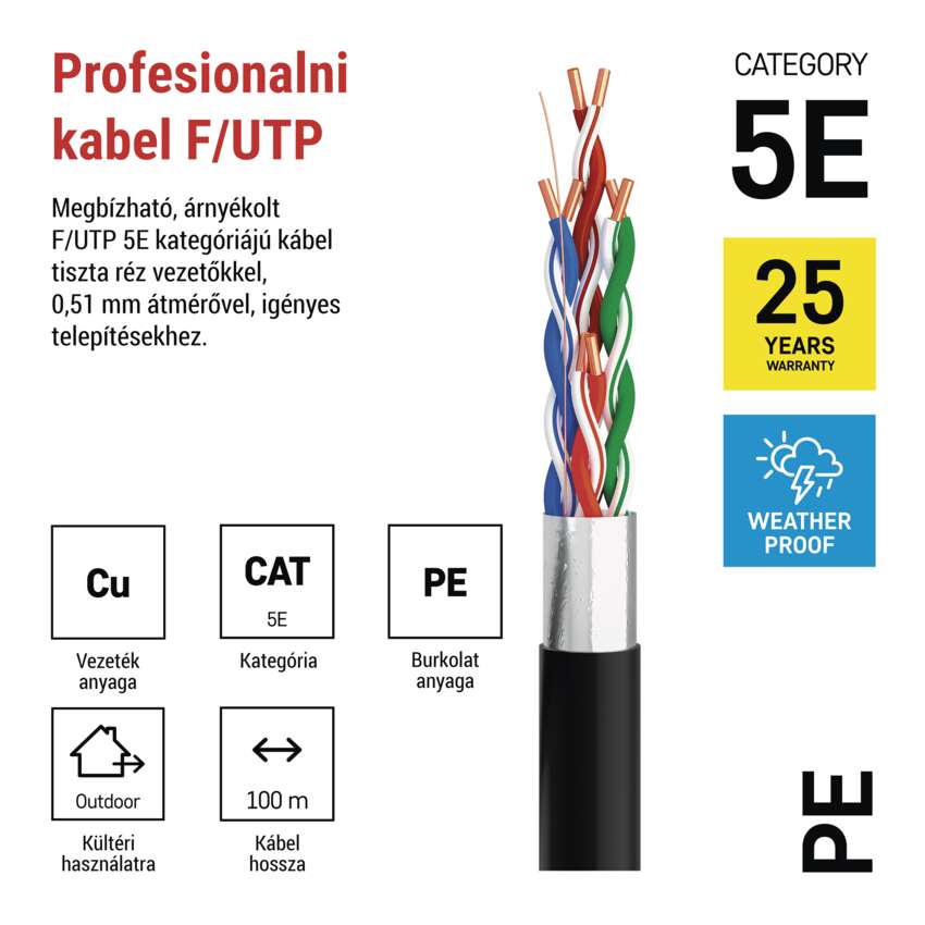 | kábel jelölése | FTP Cat5E PE OUTDOOR 1 – 100 m |