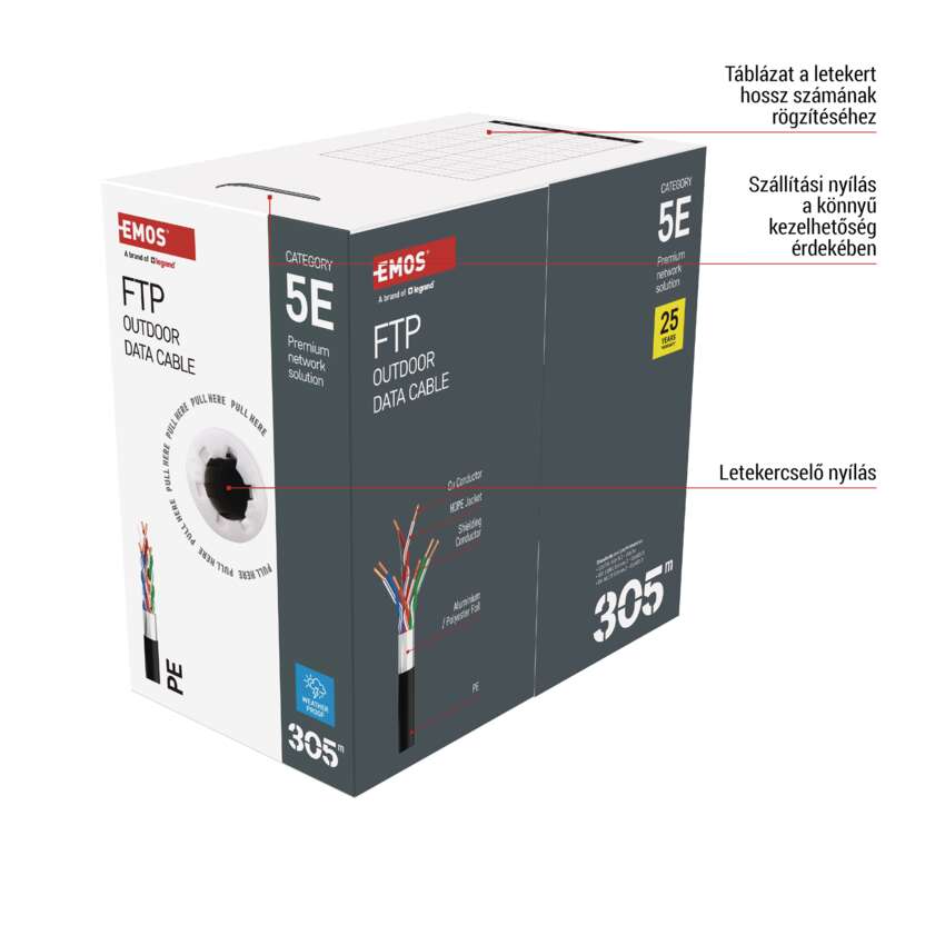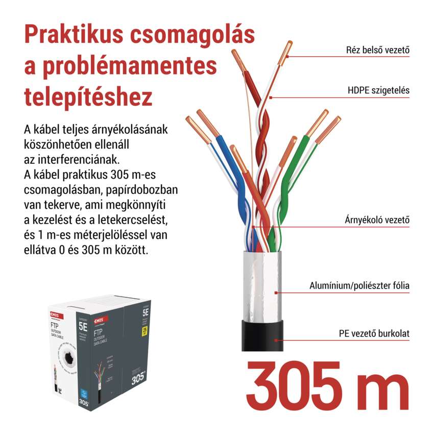 | kábel jelölése | FTP Cat5E PE OUTDOOR 1 – 305 m |