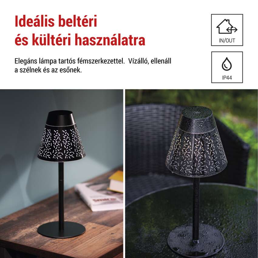 Fedezze fel az elegancia és a funkcionalitás tökéletes kombinációját a GRACE asztali lámpával. Az elegáns fekete dizájn és a fényerőszabályozási lehetőség tökéletes hangulatot teremt bármely íróasztalra vagy éjjeliszekrényre. A kiváló stabilitással rendelkező masszív konstrukció biztonságos és megbízható világítást garantál otthonában. A vízállóságnak köszönhetően ez a lámpa ideális kültéri használatra, például a verandán.