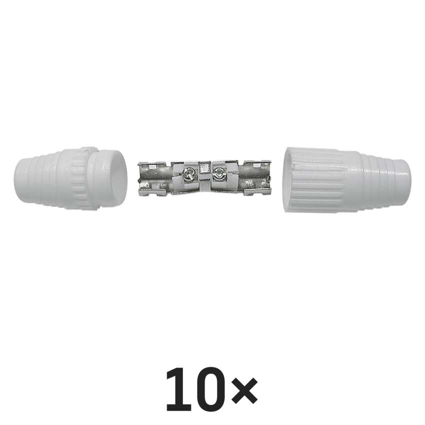 IEC csatlakozás koaxiális kábelek meghosszabbításához. Fehér szín. 10 darabos kiszerelésben elérhető.