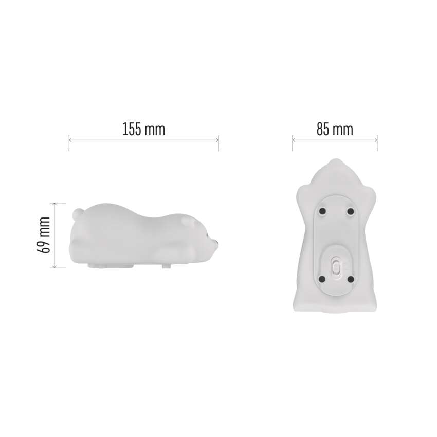 Ez az éjjeli lámpa kellemes hangulatot varázsol a gyermekszobákba a pihenéshez és a játékhoz. A lámpa érintésvezérlővel van felszerelve, amely lehetővé teszi a színek könnyű váltását szükség szerint. Több színmód áll rendelkezésre, köztük egy meleg fehér, amely ideális a nyugtató lefekvés előtti hangulathoz. A lámpa újratölthető, így anélkül használhatja, hogy az elemek cseréjével kellene törődnie. Ezenkívül praktikus időzítővel rendelkezik, amely 30 perc után automatikusan kikapcsolja a fényt, így energiát takarít meg és növeli a használat kényelmét.
