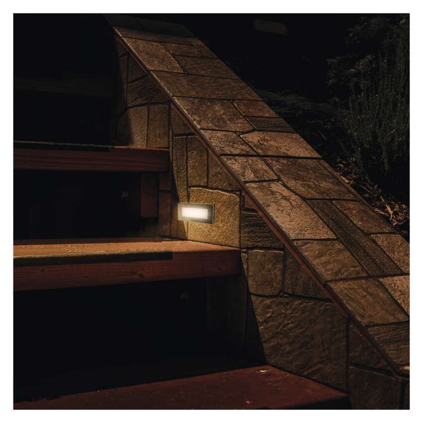 A LED-jelzőfény elhelyezhető elektromos kötődobozokban. A lámpával egyszerűen és hatékonyan megvilágíthatók a folyosók, a belső lépcsőházak és a külső terek.