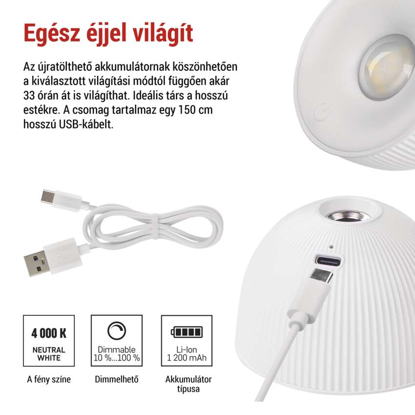 EMOS Sophie LED asztali lámpa, újratölthető, fehér