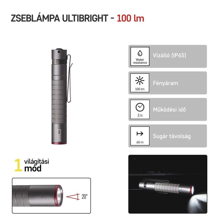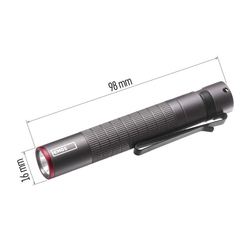 Az EMOS Ultibright 50 zseblámpa mindig a keze ügyében lehet. Köszönhetően annak, hogy csak kicsit vastagabb, mint egy AAA elem, a hossza pedig kevesebb, mint 10 cm, ezért rendkívül kompakt és könnyű. Minden zsebben, táskában, vagy ridikülben elfér.