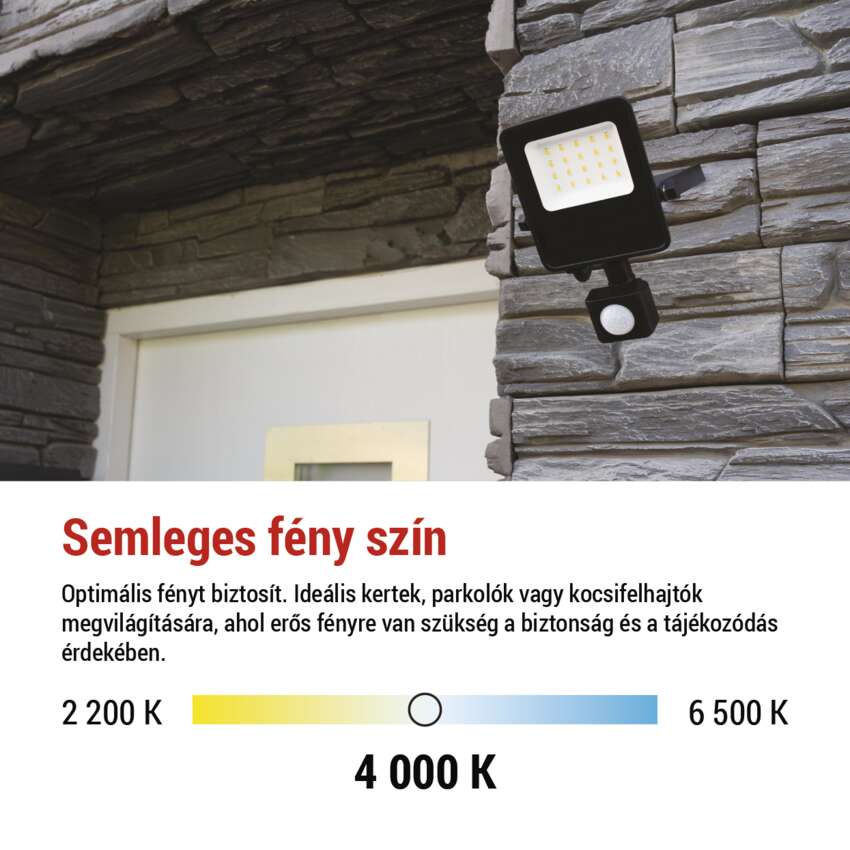 PIR-érzékelő- automatikus világítás mozgáskor, ami energiát takarít meg, valamint növeli a kényelmet és a biztonságot.