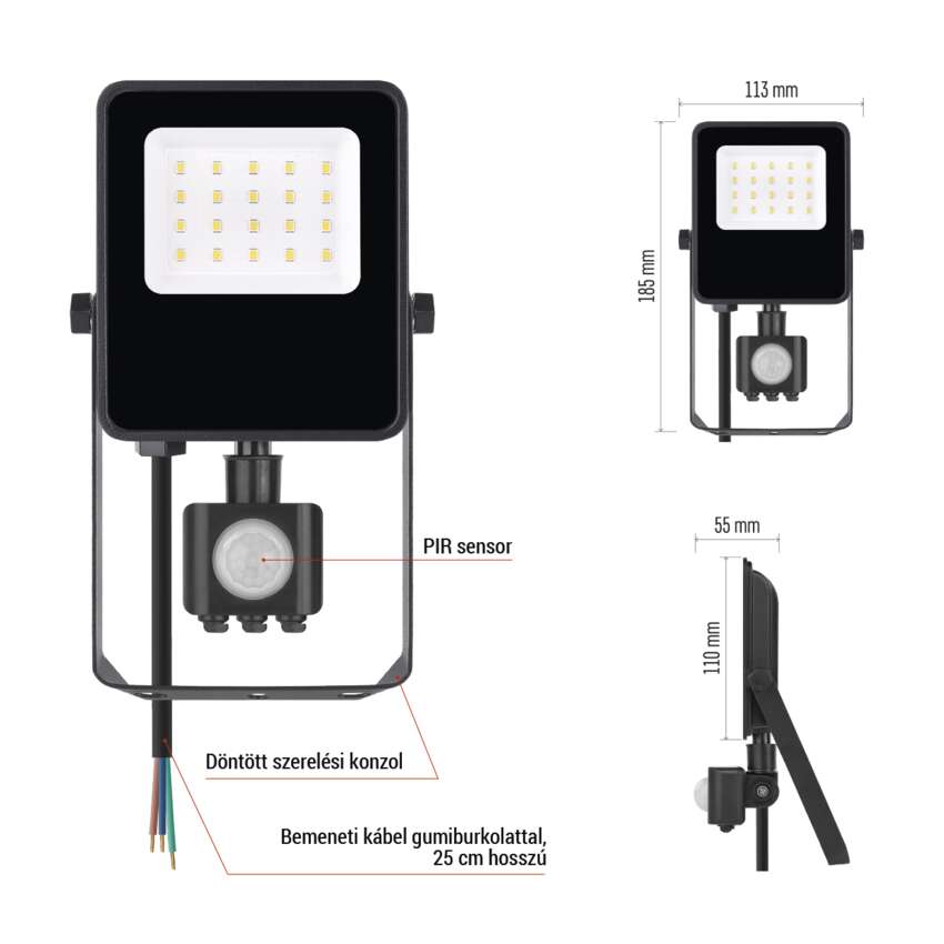 A VISIO spotlámpák a világítási lehetőségek gazdag választékát kínálják, hogy a legkülönbözőbb igényeknek és tereknek megfeleljenek. A PIR érzékelő opcióval négy különböző méret közül választhat, amelyek egyenesen arányosak a teljesítményükkel - a kisebb terek megvilágítására alkalmas kisebb modellektől a nagy spotlámpákig.