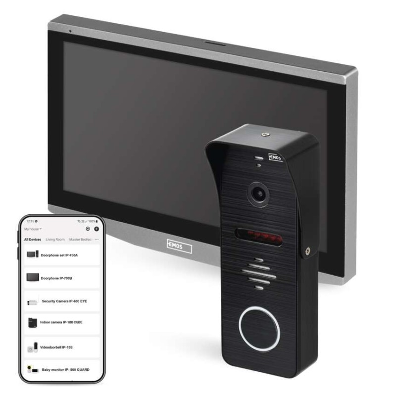 A videofon 7" LCD érintőképernyős monitorral van felszerelve, amely színhű megjelenítést és széles látószöget biztosít. Az LCD-monitor képernyőjén vagy a mobiltelefonos alkalmazáson egy gombnyomással kétirányú kommunikációt folytathat az ajtaja előtt álló szívesen látott és nem kívánt látogatókkal.