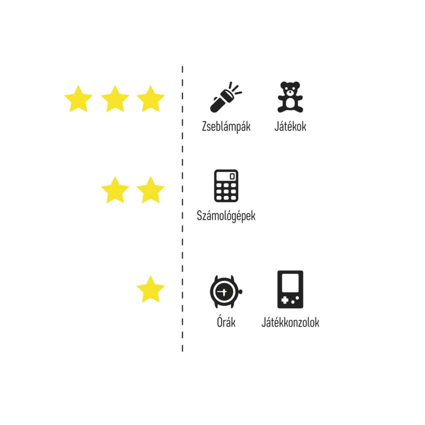 | kapacitás | 110 mAh (1,6 kohm-os terhelés esetén) |