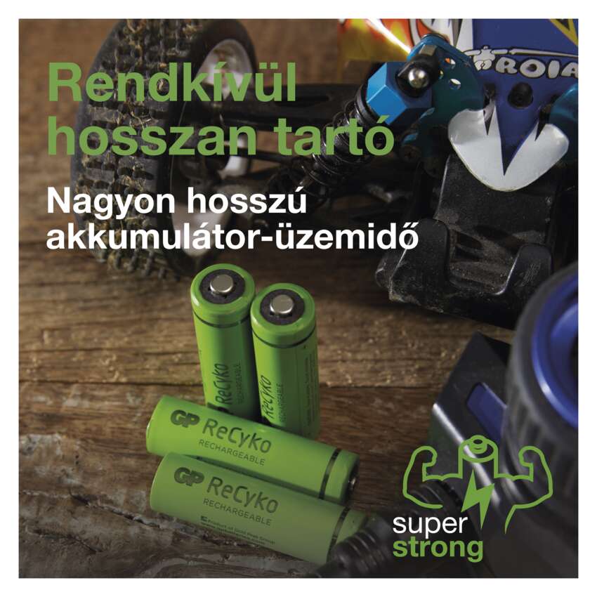 A GP ReCyko újratölthető elemek extrém üzemidővel büszkélkednek. A piacon általában kapható legnagyobb kapacitású akkumulátorok közé tartoznak. Mivel rendkívüli terhelés esetén sem hagynak cserben, egy sor tevékenységhez jelentenek jó választást.