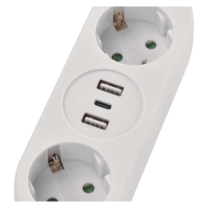 Hosszabbító 1,4 m / 2 aljzat+2×USB-A+1×USB-C / fehér / PVC / 1,5 mm2