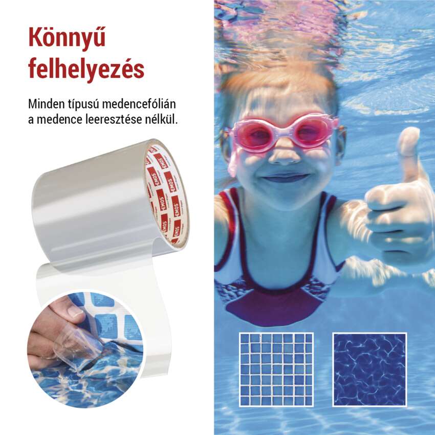 - Átlátszó, vízálló szalag kisebb repedések és lyukak javítására nem csak a medencében