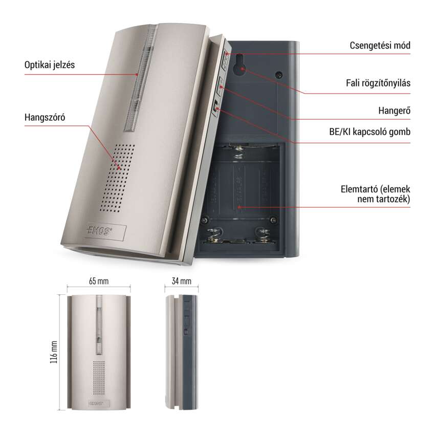 | csengő méretek | 34 × 65 × 116 mm |