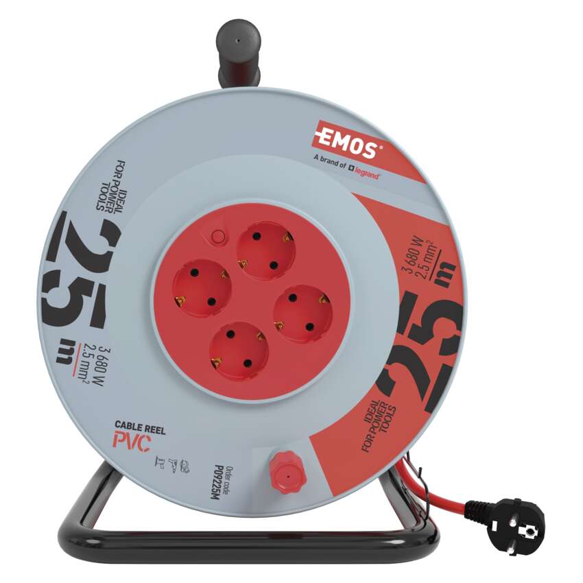 Kábeldob 25 m / 4 aljzat / fekete / PVC / 230 V / 2,5 mm2