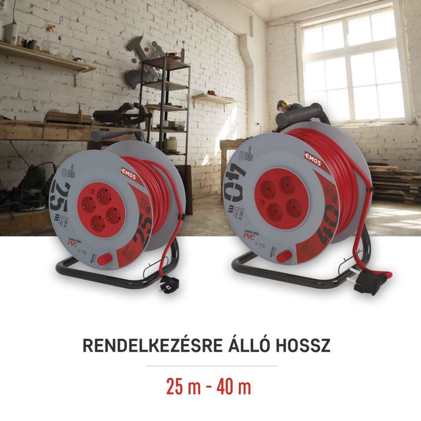 Minőségi SCHUKO hosszabbítókábel-feltekerő dob. 230 V~ feszültségű hálózatokhoz ideális. A dobnak köszönhetően kényelmesen használható.