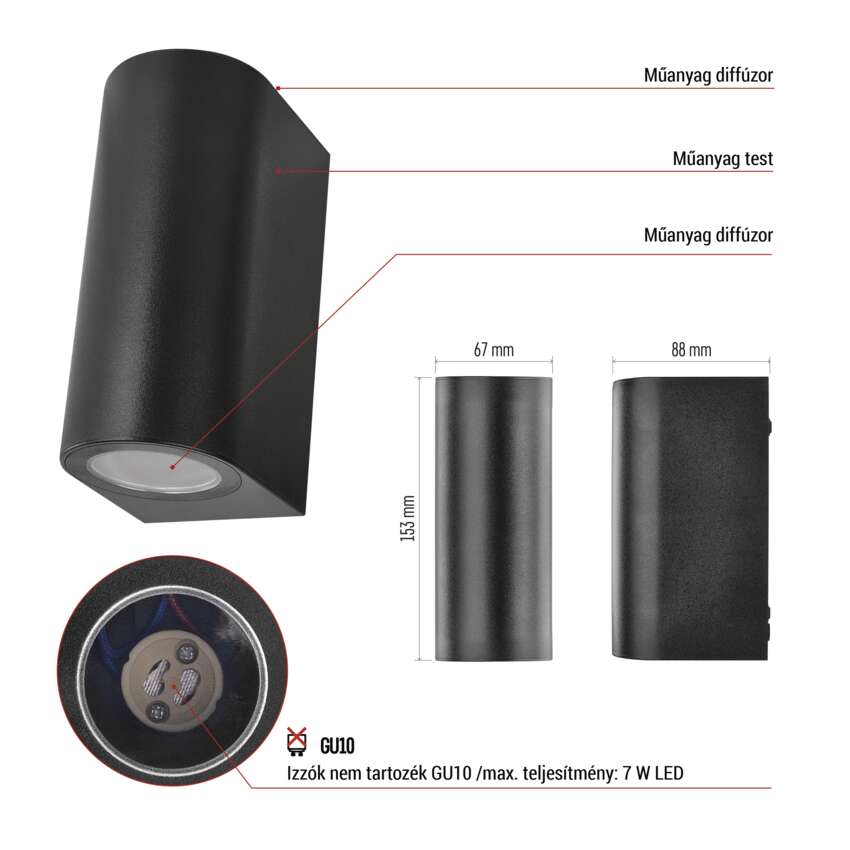Kerti fali lámpa OCULUS, 8,8 x 6,7 x 15,3 cm, 2 x GU10, 2× 7W