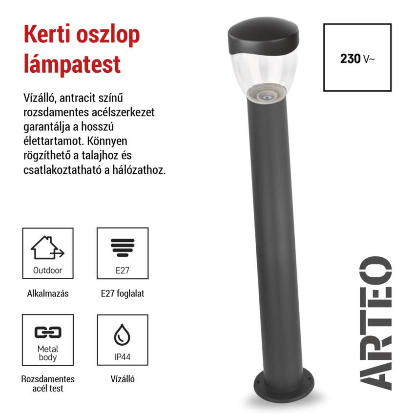 Kerti oszloplámpa ARTEO, 12 x 12 x 80 cm, 1 x E27, 15 W
