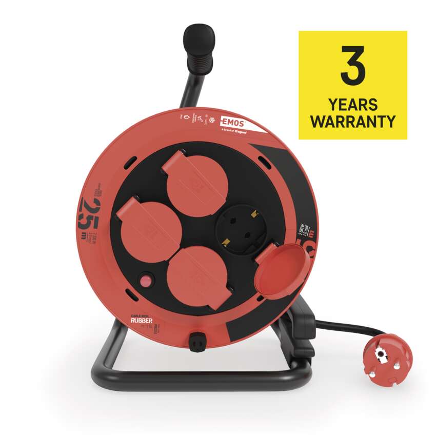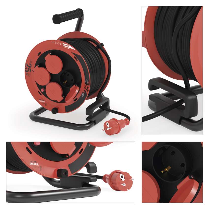 A gumikábeles kábeldobot úgy tervezték, hogy ellenálljon a legkeményebb kül- és beltéri körülményeknek. Négy aljzattal, vezetőszemmel és hőbiztosítékokkal felbecsülhetetlen értékű eszközzé válik a kertben, az építkezésen vagy a műhelyben végzett munkához. A vízállóság, extrém hőmérsékletek és durva kezelés miatt minden időjárási körülmények között is megbirkózik a munkával, és igazán hosszú ideig tart.