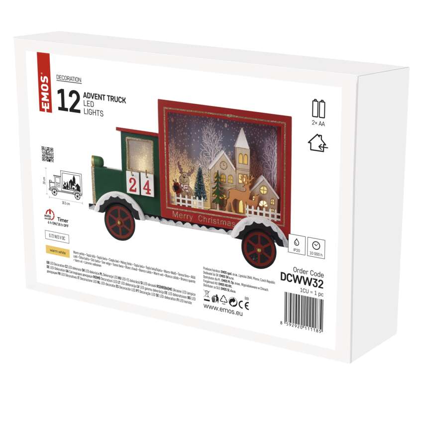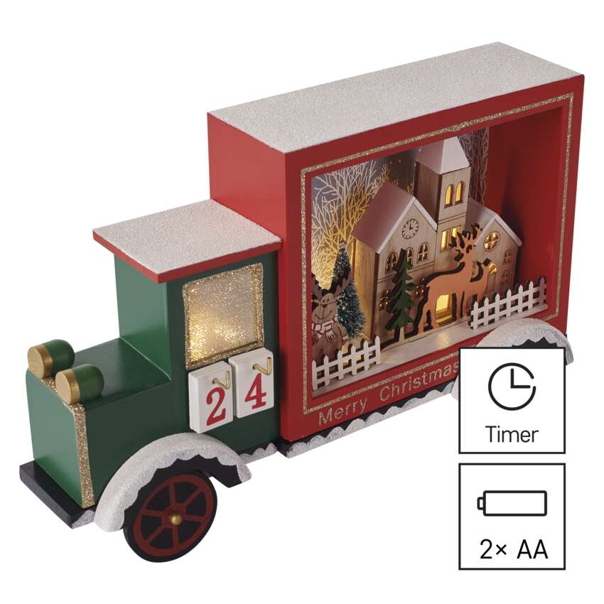 Az adventi és karácsonyi készülődés nem nélkülözheti a népszerű adventi naptárat, amelyet különösen a gyerekek szeretnek. Számold vissza velük együtt a szentestéig hátralévő 24 napot a kellemes meleg fehér fényű kisautós adventi naptárral. Az A AA elemes tápellátásnak köszönhetően a belső térben mindenhol elhelyezhető. Különösen jól mutat egy ablakpárkányon, komódon vagy tévéasztalon, és segít a karácsonyi hangulat finomhangolásában. Ha a naptár minden napjához egy kis édességet vagy ajándékot adsz, akkor kedves mindennapi meglepetést szerezhetsz magadnak és gyermekeidnek.