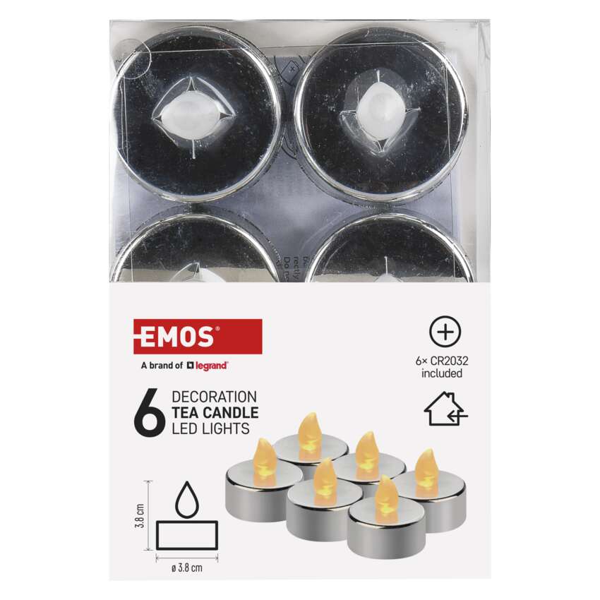 LED dekoráció – 6x teamécses, ezüst, 6x CR2032, beltéri, vintage