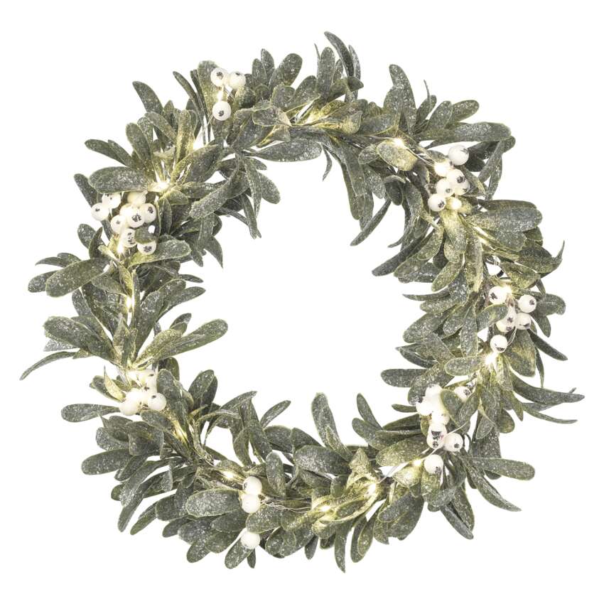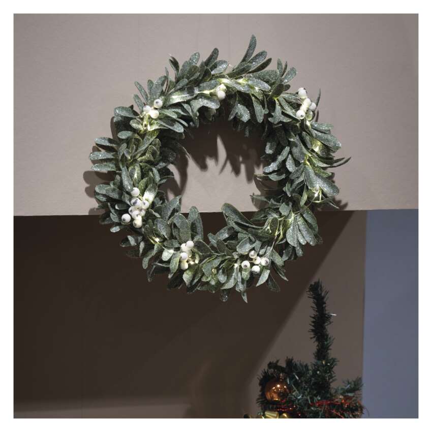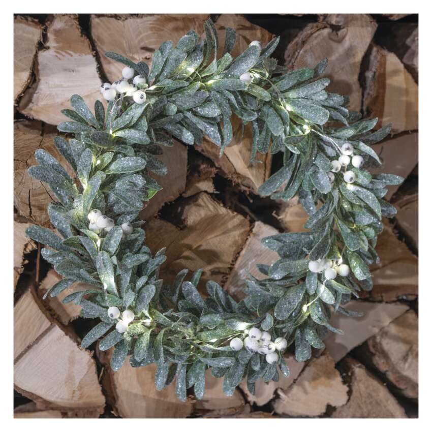 LED dekoráció - fagyöngy koszorú, 3x AA, meleg fehér, időzítő