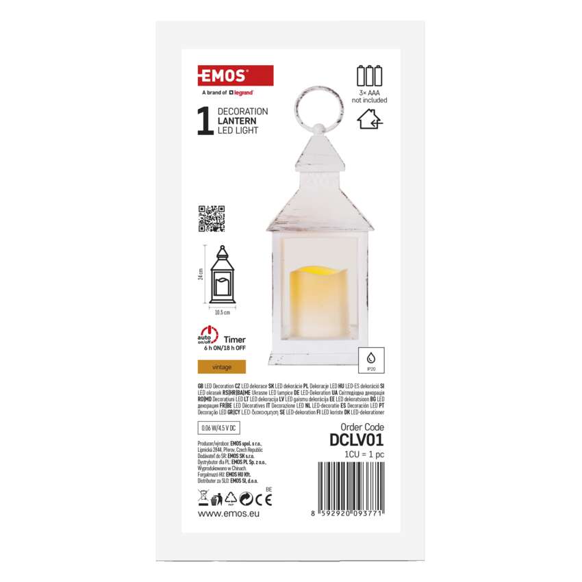 LED dekoráció – lámpa, antik, fehér, villogó, 3x AAA, beltéri, vintage, időzítő
