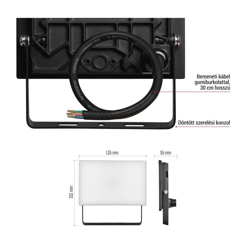 LED-es reflektor TAMBO, 20 W, 2000 lm, IP65, fekete