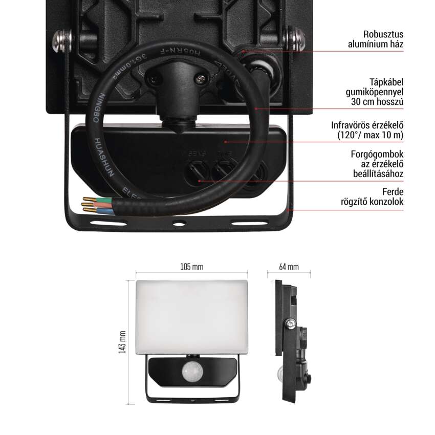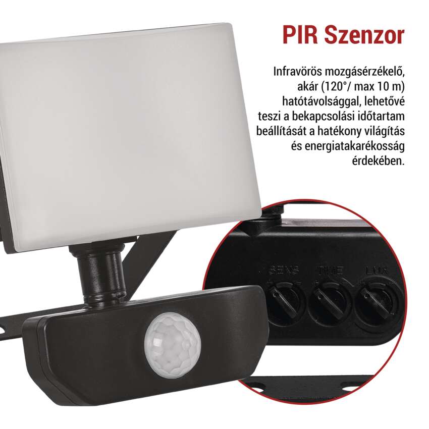 LED-es reflektor TAMBO mozgásérzékelővel, 10 W, 1000 lm, fekete