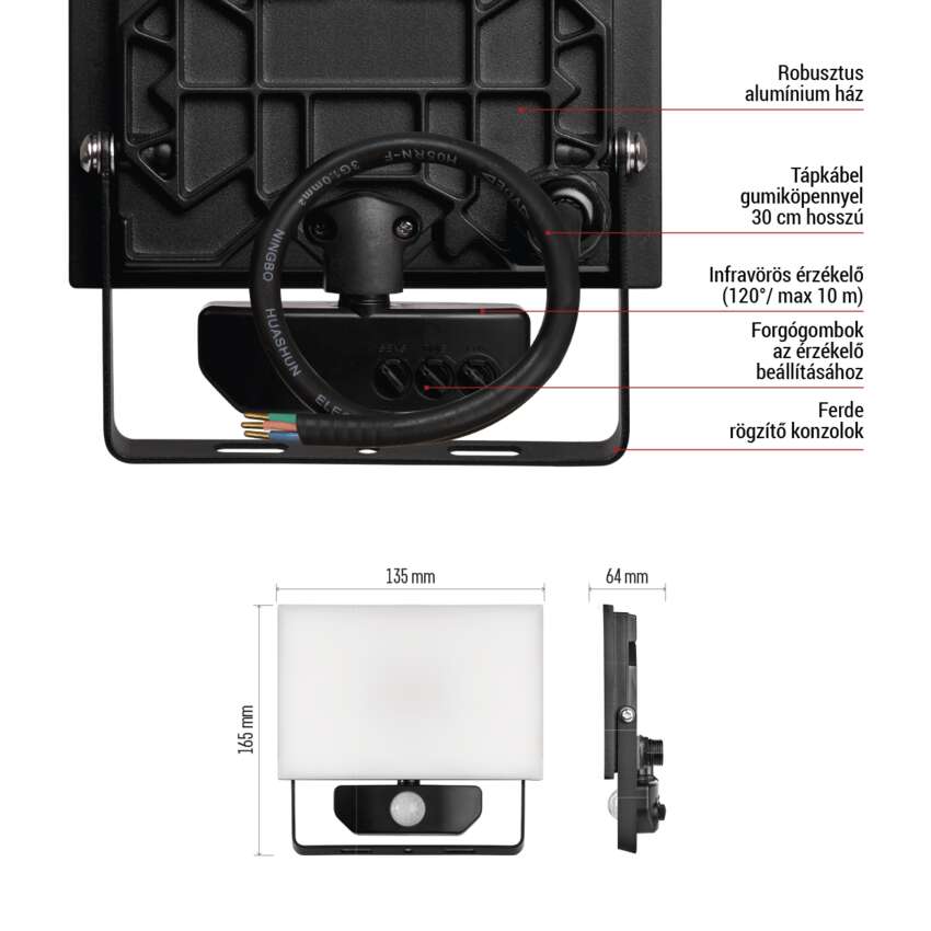 LED-es reflektor TAMBO mozgásérzékelővel, 20 W, 2000 lm, fekete