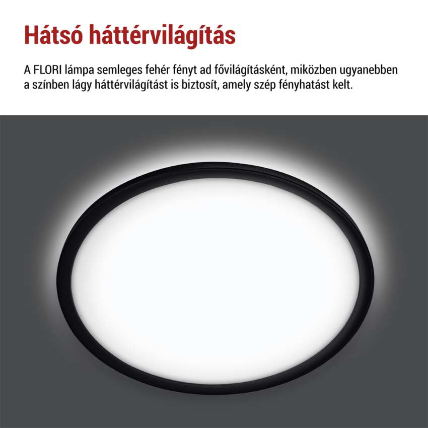 LED felületi lámpatest FLORI fekete, fehér, 18W, semleges fehér