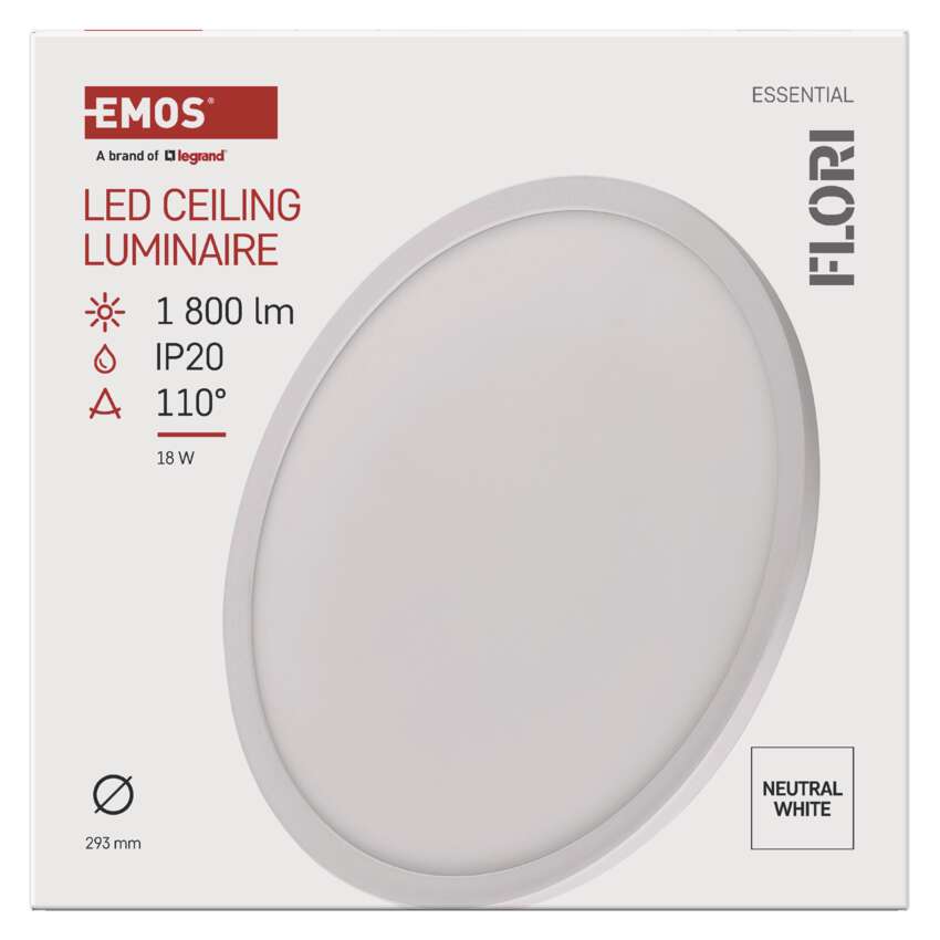 LED felületi lámpatest FLORI kerek, fehér, 18W, semleges fehér