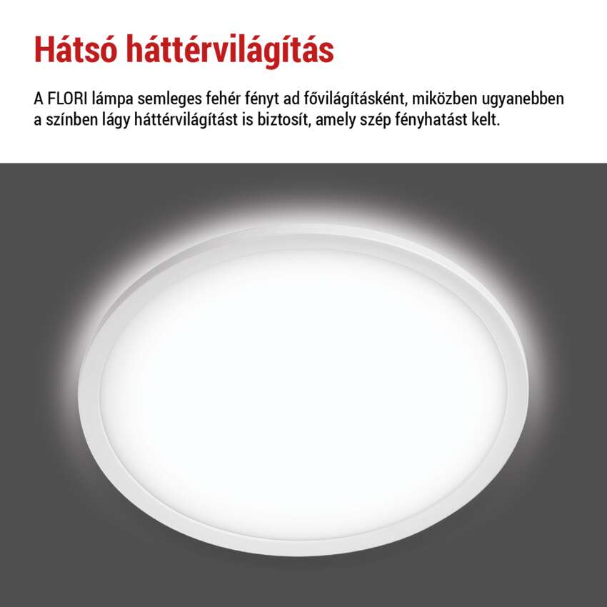 LED felületi lámpatest FLORI kerek, fehér, 22W, semleges fehér