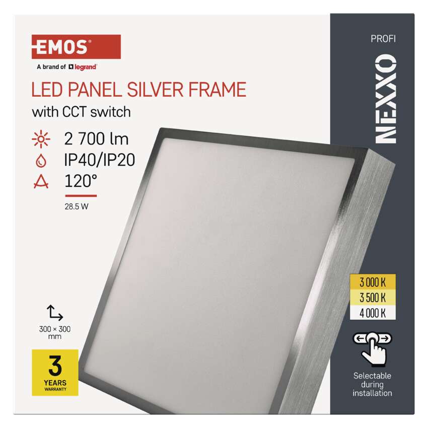 LED felületi lámpatest NEXXO, négyzet, ezüst, 28,5W, CCT