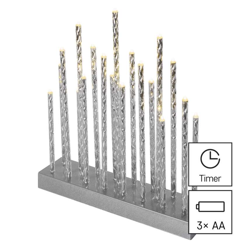 LED gyertyatartó, ezüst, 28,5 cm, 3x AA, beltéri, meleg fehér, időzítő