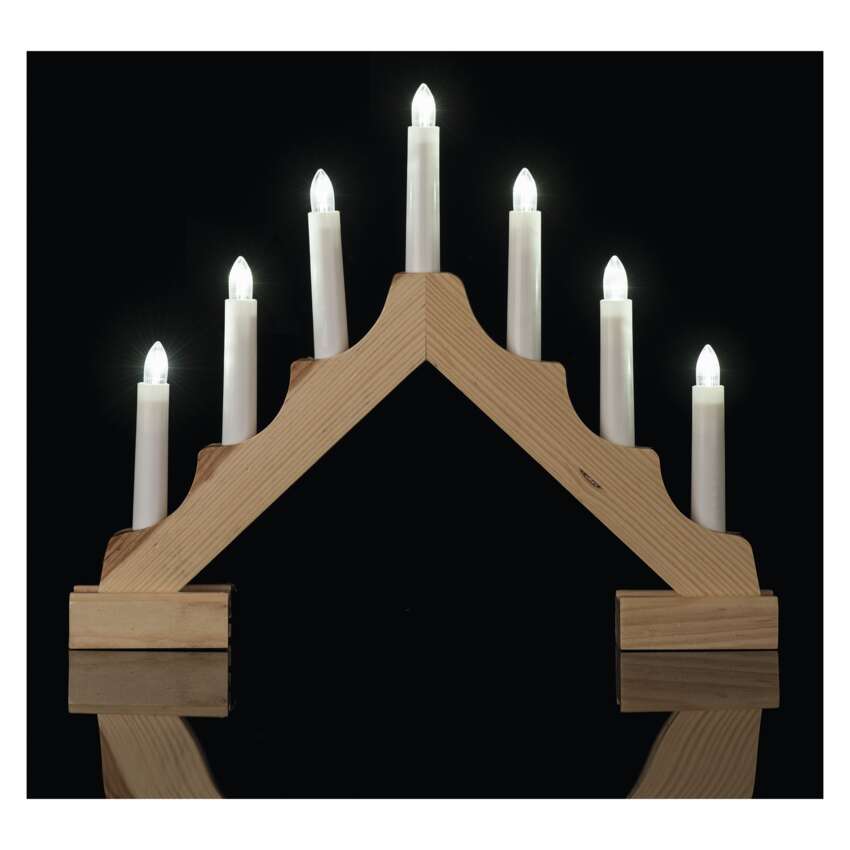LED gyertyatartó, fa, 29 cm, 2x AA, beltéri, meleg fehér, időzítő