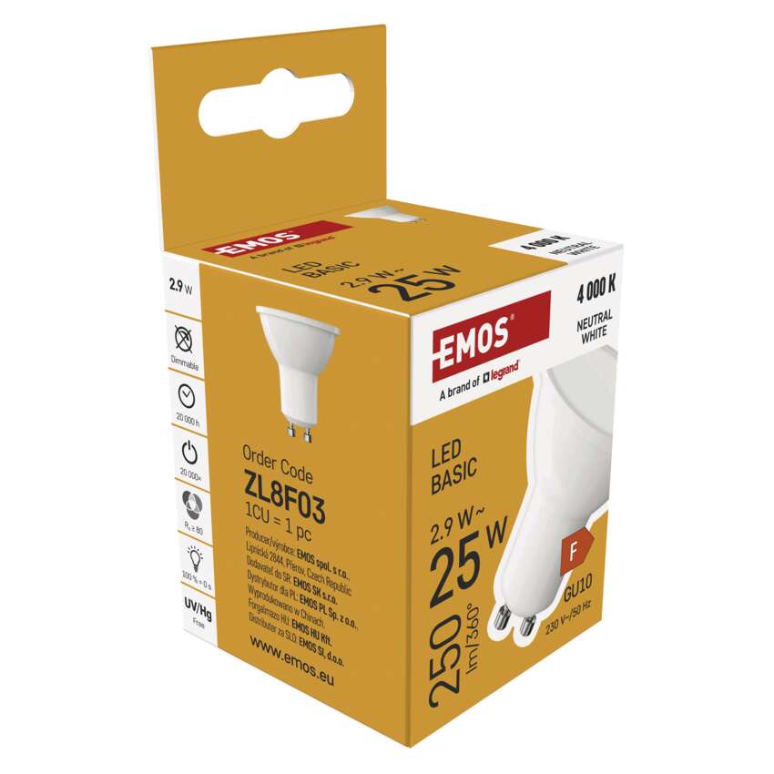 LED izzó Basic MR16 / GU10 / 2,9 W (25 W) / 250 lm / Természetes fehér