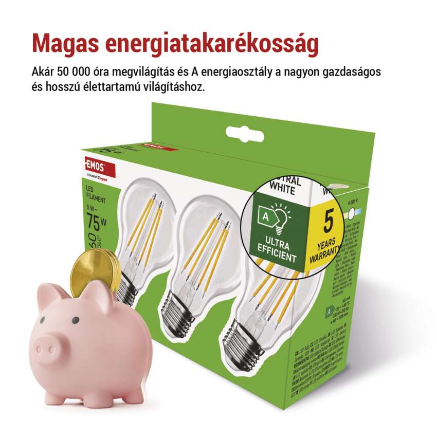A Filament sorozat Ultra energiatakarékos izzói olyan LED-izzók, amelyek ötvözik a modern LED-technológiát az izzólámpák klasszikus megjelenésével. Ezek az izzók nagyon hatékonyak, környezetbarátok és hosszú, akár 50 000 órás élettartammal is rendelkeznek, ami kétszerese a hagyományos világításhoz képest. Ez azt jelenti, hogy ritkábban kell cserélni őket, így nemcsak energiát, hanem pénzt is megtakaríthat.