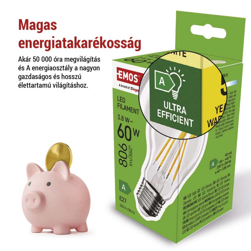 A Filament sorozat Ultra energiatakarékos izzói olyan LED-izzók, amelyek ötvözik a modern LED-technológiát az izzólámpák klasszikus megjelenésével. Ezek az izzók nagyon hatékonyak, környezetbarátok és hosszú, akár 50 000 órás élettartammal is rendelkeznek, ami kétszerese a hagyományos világításhoz képest. Ez azt jelenti, hogy ritkábban kell cserélni őket, így nemcsak energiát, hanem pénzt is megtakaríthat.