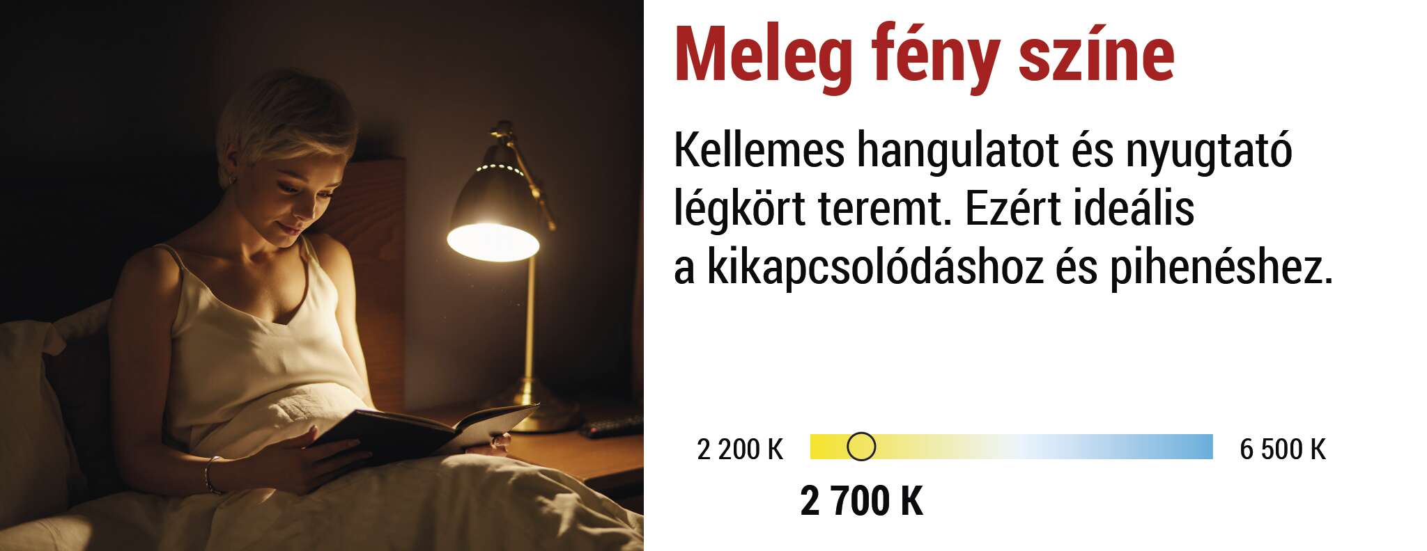 - Meleg fehér fény tökéletes az esti pihenéshez és kikapcsolódáshoz a nappaliban vagy a hálószobában