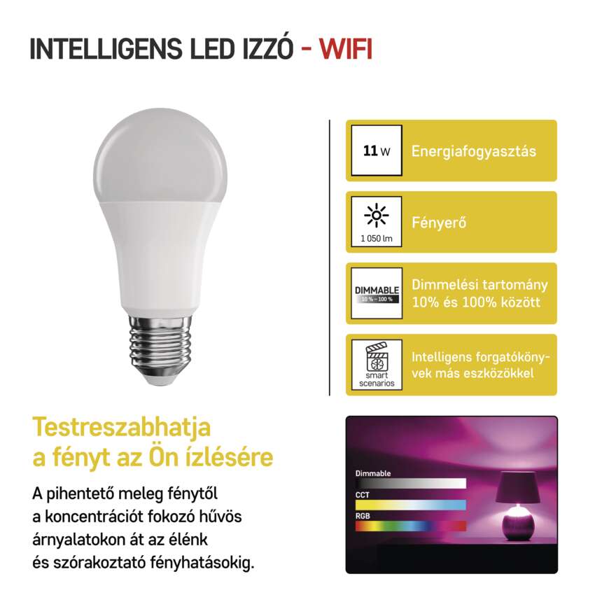 Ezekkel az izzókkal könnyedén változtathatja a fény színét, legyen az fehér színhőmérséklet (CTT) 2700 K-tól 6500 K-ig, vagy akár RGB színek. Bármikor megteremtheti a tökéletes hangulatot – a pihentető meleg fénytől a koncentrációt támogató hűvös árnyalatokon át egészen az élénk, szórakoztató fényhatásokig. A világítás egy igazi művészeti eszközzé válik, amely végtelen lehetőséget kínál kreativitása kibontakoztatására.