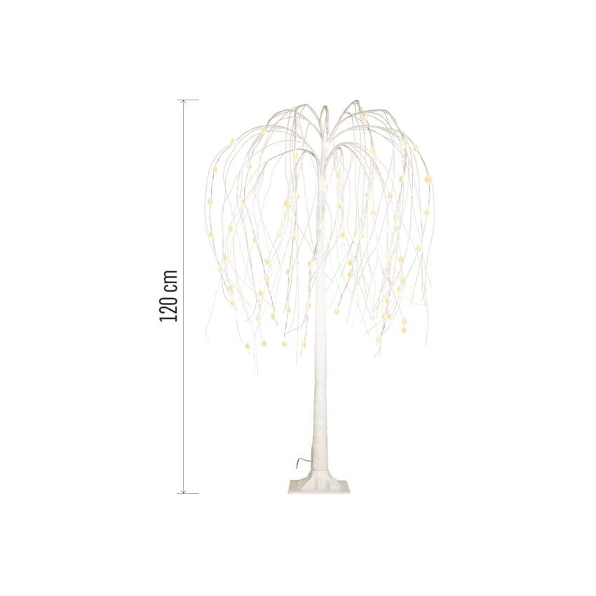 Ez a modern fűzfa nagyszerű benyomást fog tenni minden látogatóra és minden barátodra. A fa kültéri és beltéri használatra készült, és nagyszerűen fog kinézni a bejárati ajtónál, az erkélyen, a kertben vagy a nappaliban. Lágy fénye meleg fehér színű bármilyen teret feldob, és varázslatossá tesz minden otthont. A felhasznált motívumnak köszönhetően nem csak karácsonykor alkalmas dekorációnak - az év többi ünnepi alkalmán is biztosan megtalálja a felhasználását. A dekoráció mérete miatt a tökéletes stabilitásra is gondoltak. Az alapot a csomagban található fémszögek segítségével lehet a talajba rögzíteni. Ennek a kiegészítőnek köszönhetően nem kell aggódnia, hogy elesik.