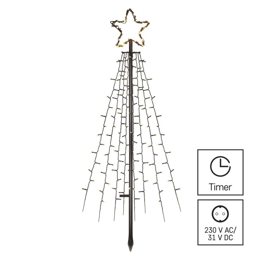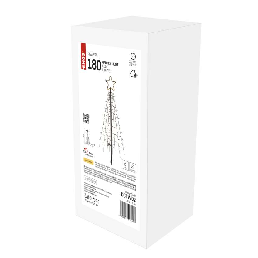 LED karácsonyfa, fém, 180 cm, kültéri és beltéri, meleg fehér, időzítő